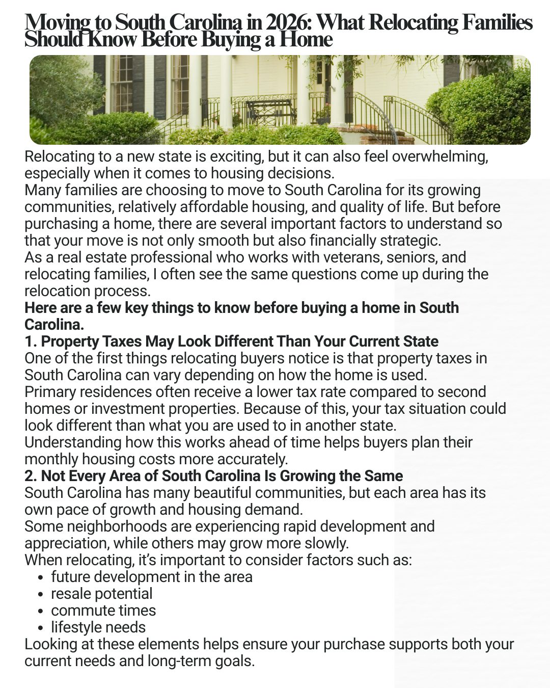 Moving to South Carolina in 2026: What relocating families should know before buying a home